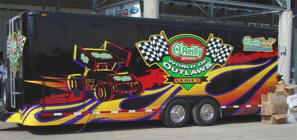 A World of Outlaws merchandise trailer.