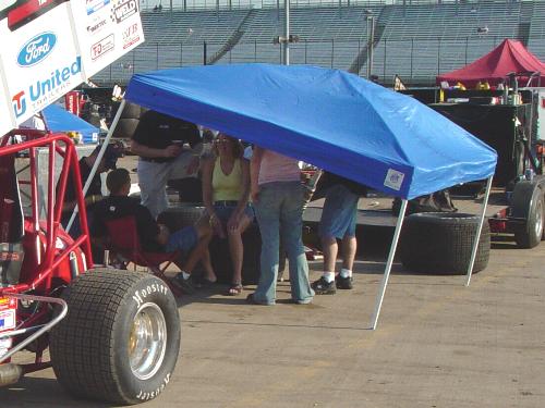 skirts in the pits next to Jac Haudenschild's Race To Hawaii sprinter.