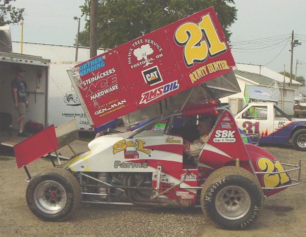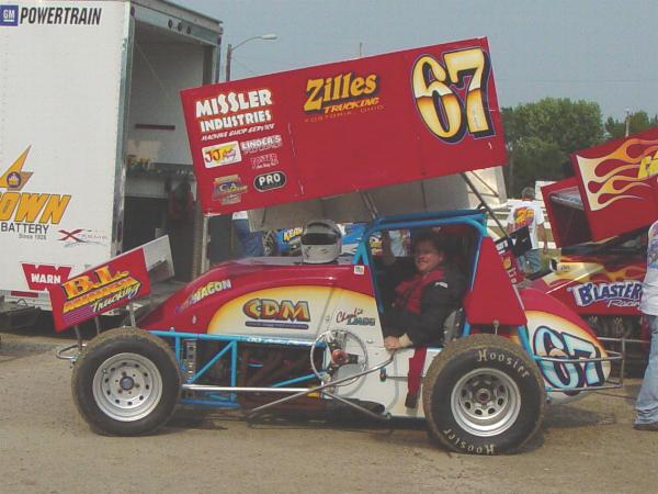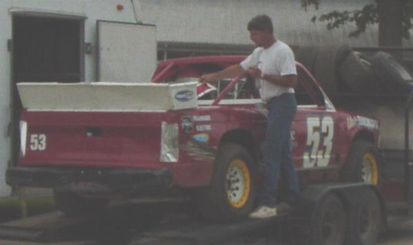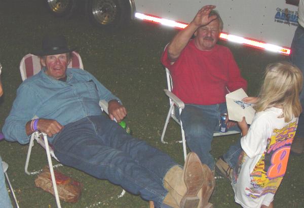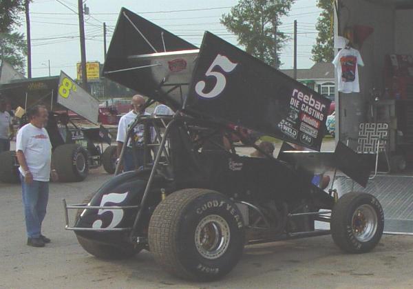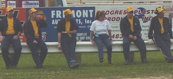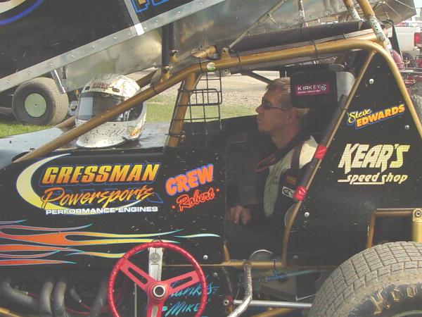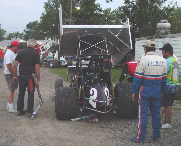 as Phil Gressman sits on the right-rear tire, and Mark Keegan checks out