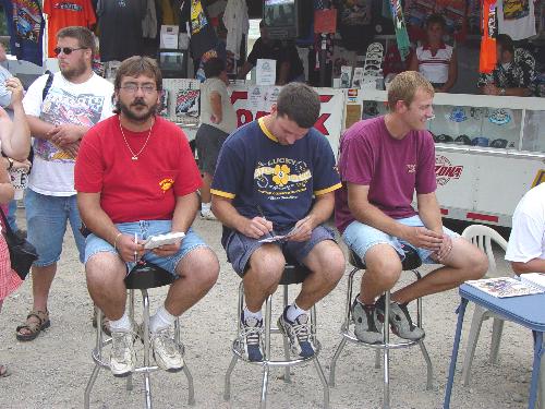 and Chad Kemenah prepare to sign autographs for fans at the All Star trailer.