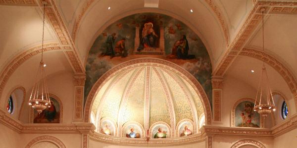 The archway and paintings above the main alter