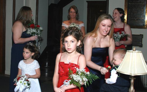 The girls busily prepare to walk down the isle