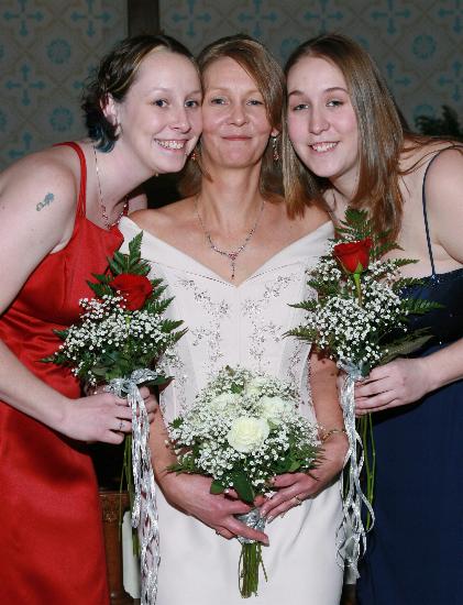 Becky with her daughters, maid of honor Jamie Lang and bridesmaid