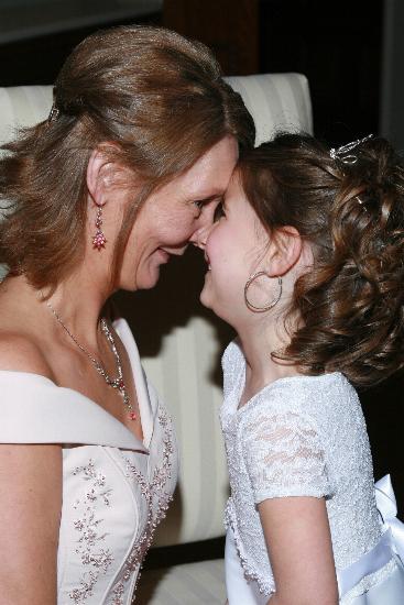 Becky with bridesmaid Alexis Hartzell, granddaughter